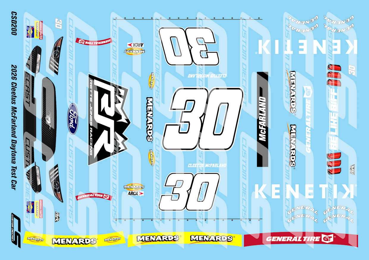 CS Custom Diecast 2026 Cleetus McFarland Kenetik Daytona Test Car