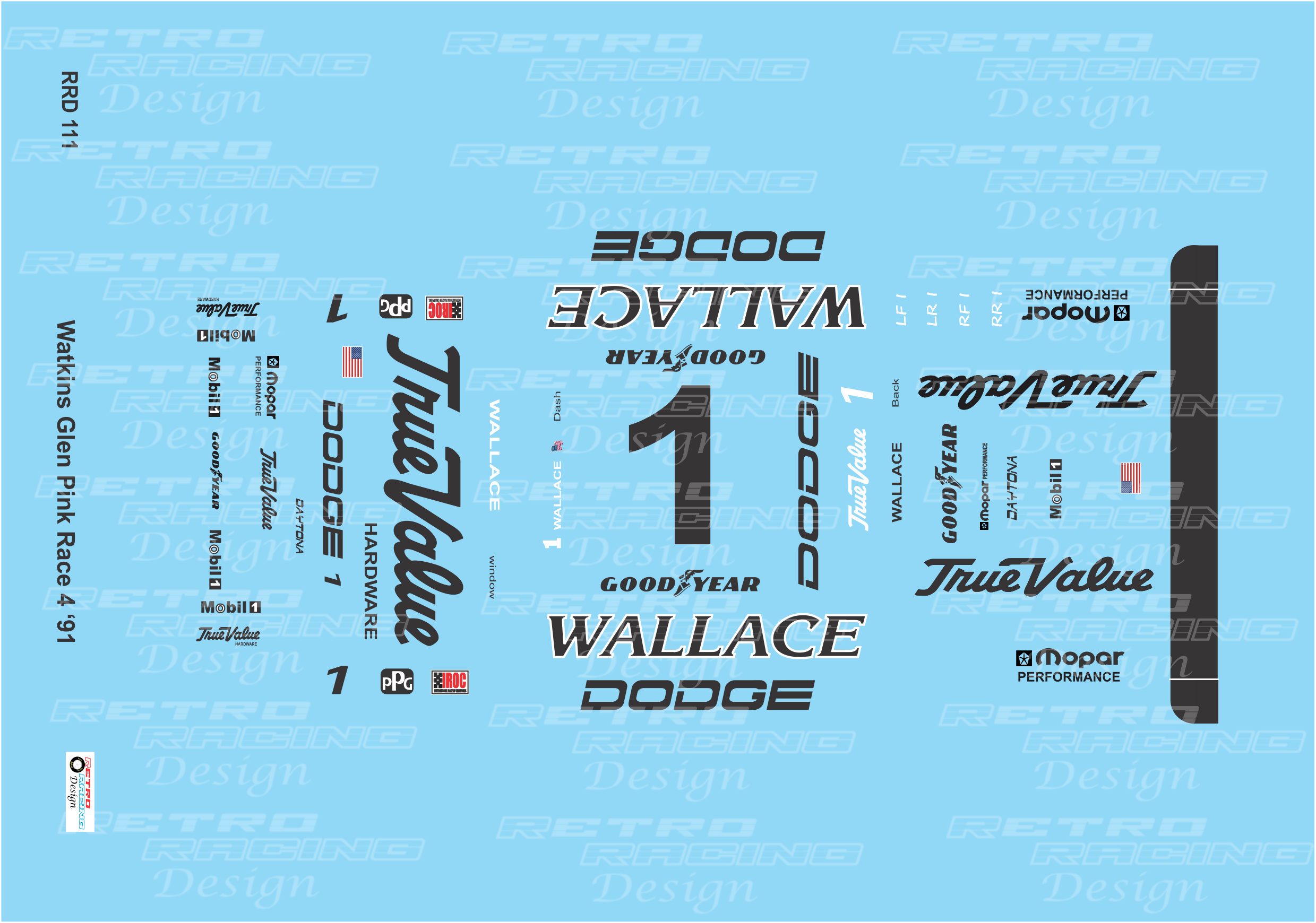 Retro Racing Design Rusty Wallace IROC 1991 #1 Pink Dodge Daytona 1/24 Scale Decal