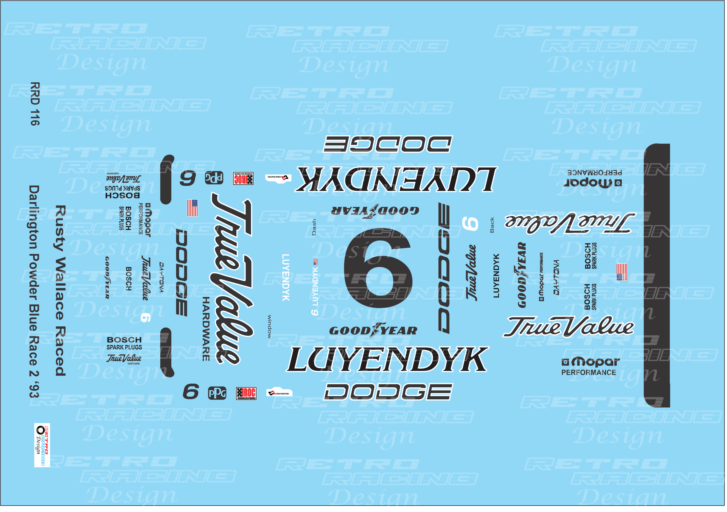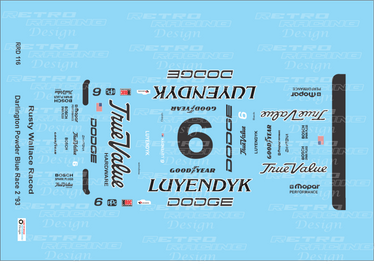Retro Racing Design Rusty Wallace IROC 1993 #6 Powder Blue Dodge Daytona 1/24 Scale Decal