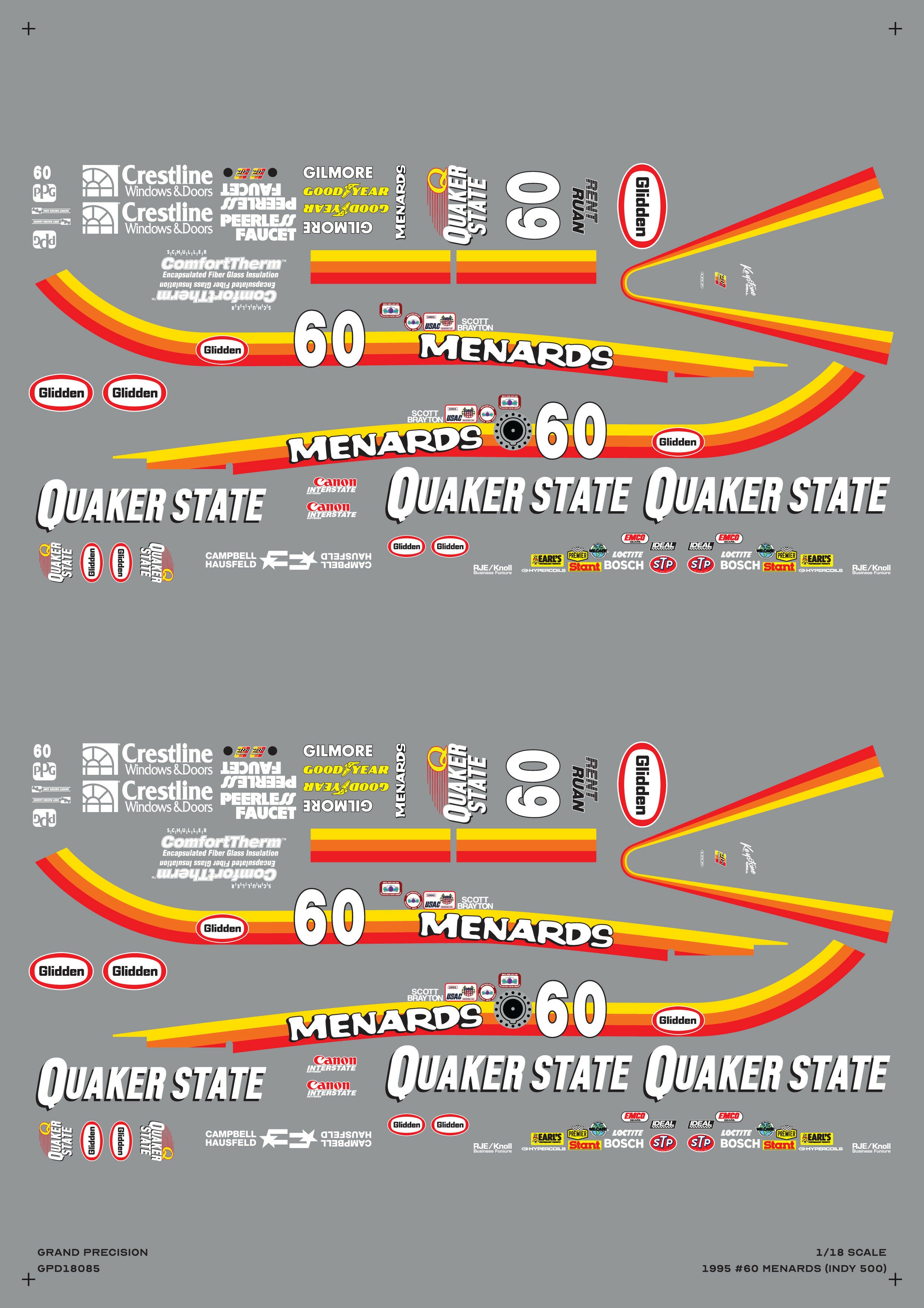 Waterslide Decals designed specifically to convert the Minichamps 1/18 scale 1995 Lola diecast to Scott Brayton's 1995 #60 Menards car from the Indianapolis 500.