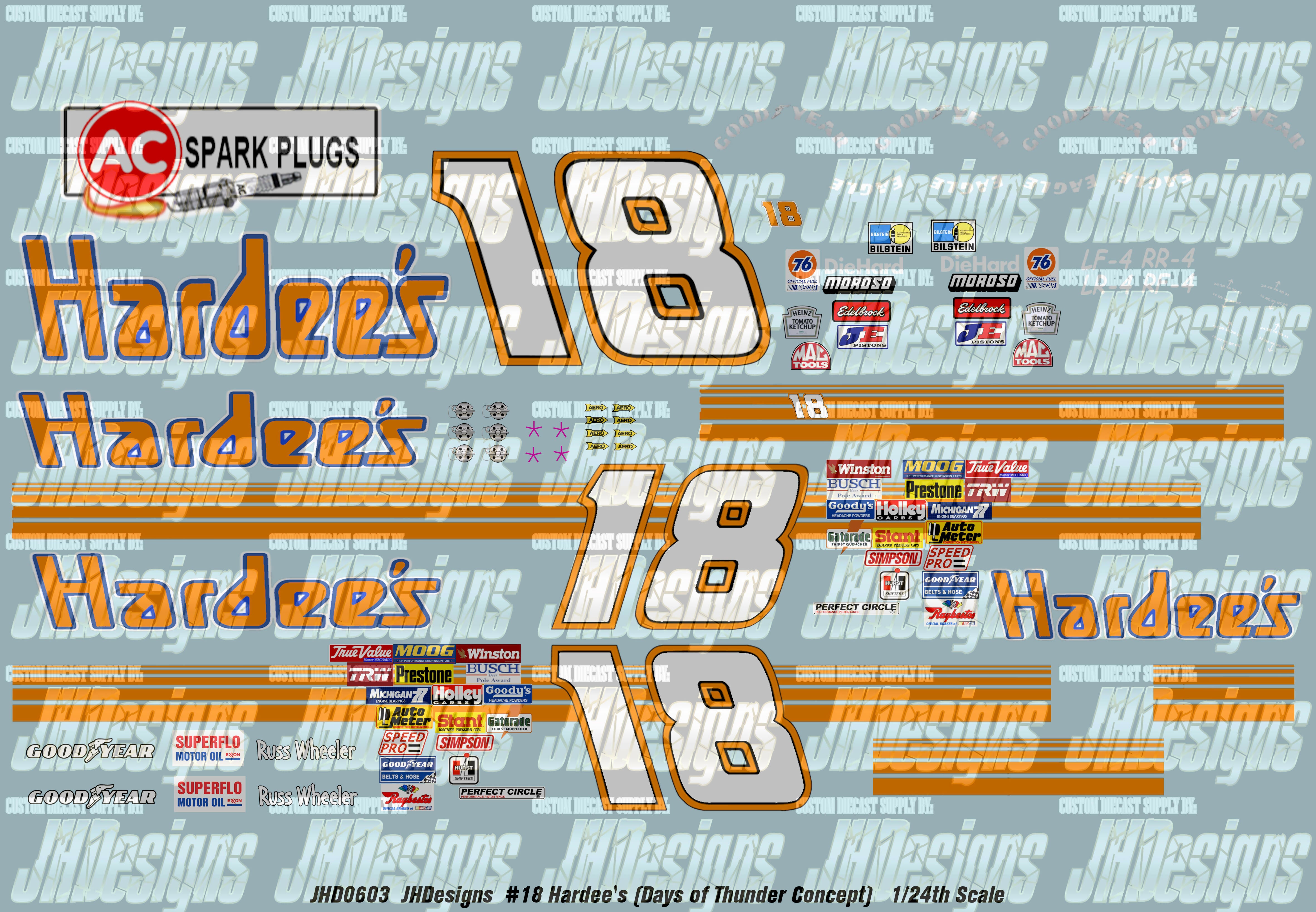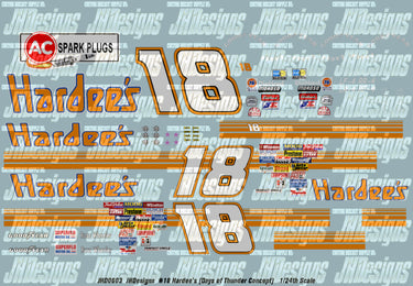 JH Designs Russ Wheeler 1990 CUP #18 Hardee's (Days of Thunder Concept) 1:24 Racecar Decal Set