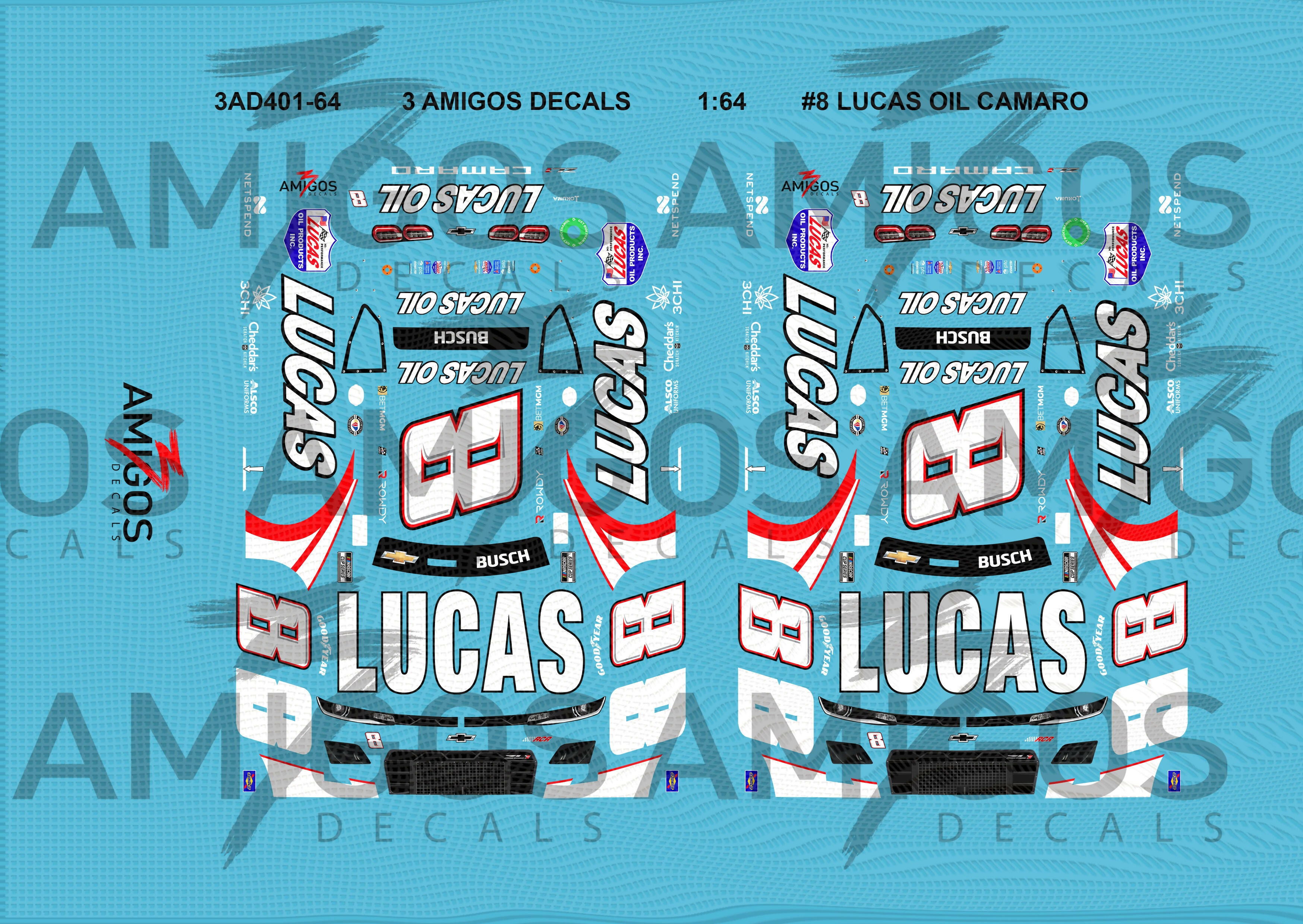 1:64 3 Amigos Decals #8 LUCAS OIL CAMARO Decal Set