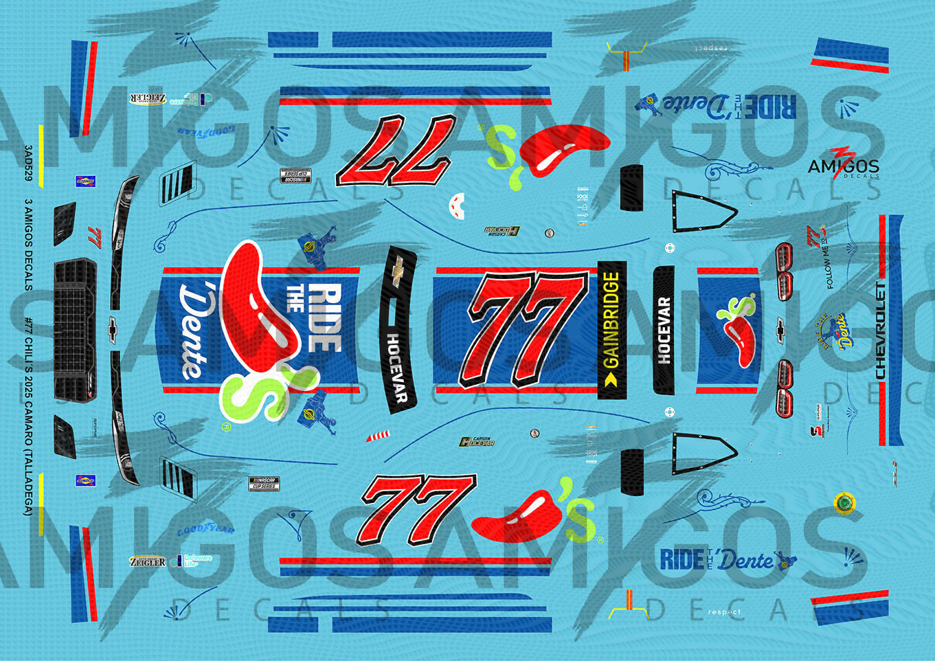 3 Amigos Decals #77 CHILI´S 2025 CHEVROLET Decal Set 1:24