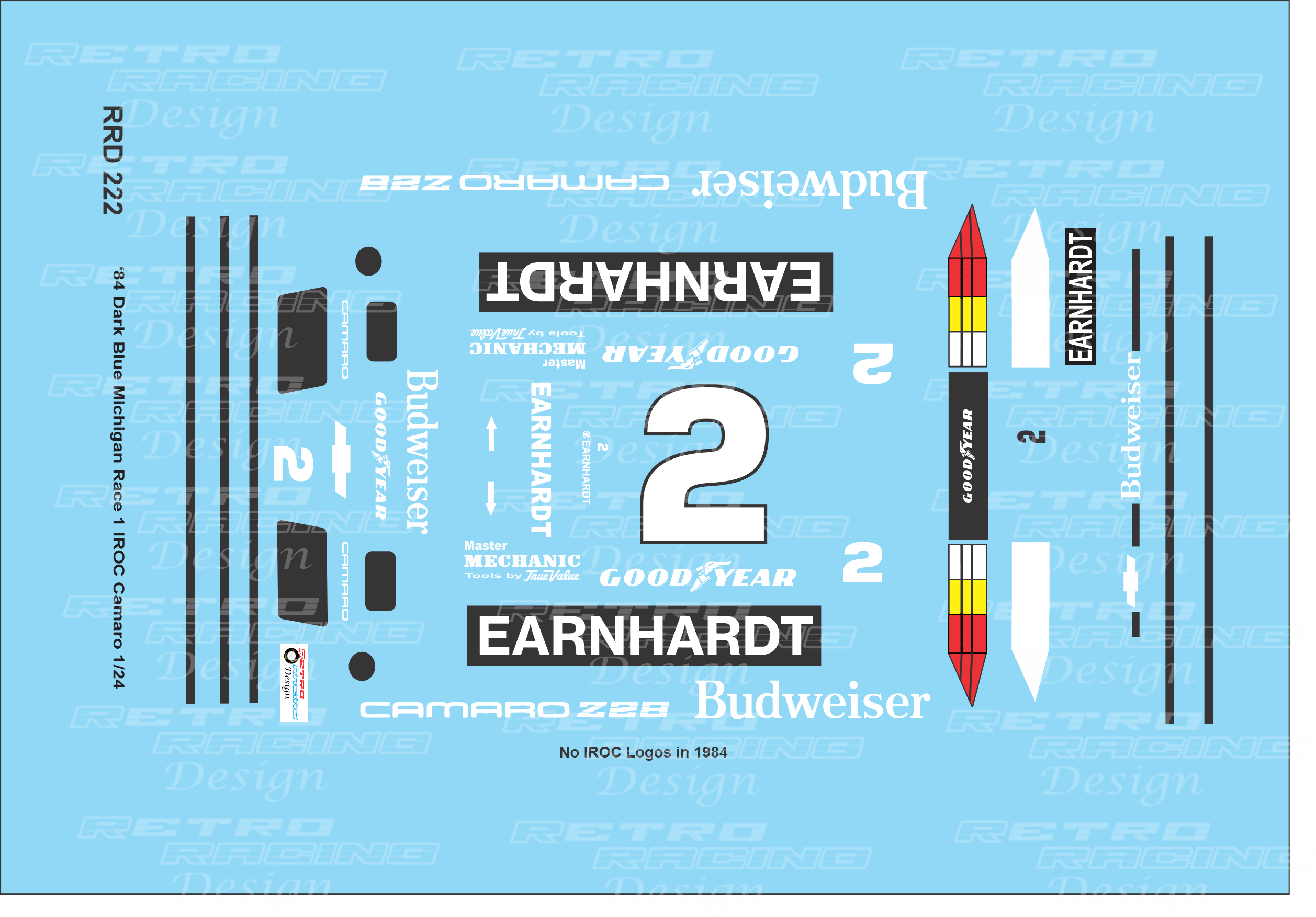 Retro Racing Design Dale Earnhardt IROC 1984 Talladega #2 Dark Blue Chevrolet Camaro 1/24 Scale Decal