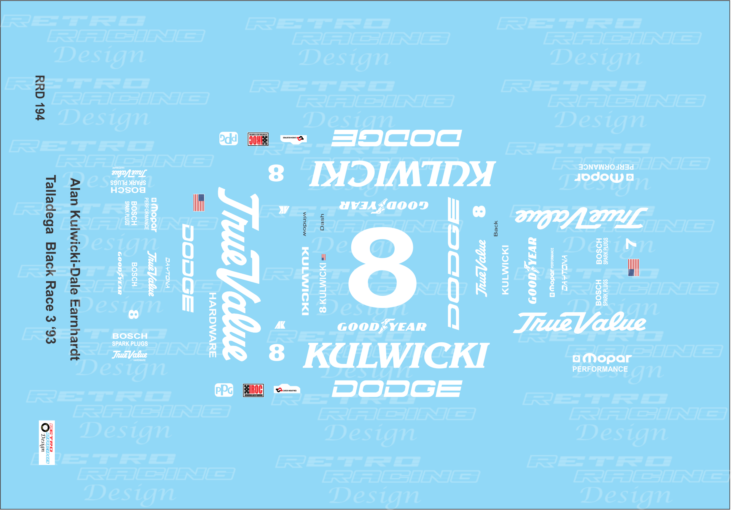 Retro Racing Design Alan Kulwicki IROC 1993 #8 Black Dodge Daytona 1/24 Scale Decal