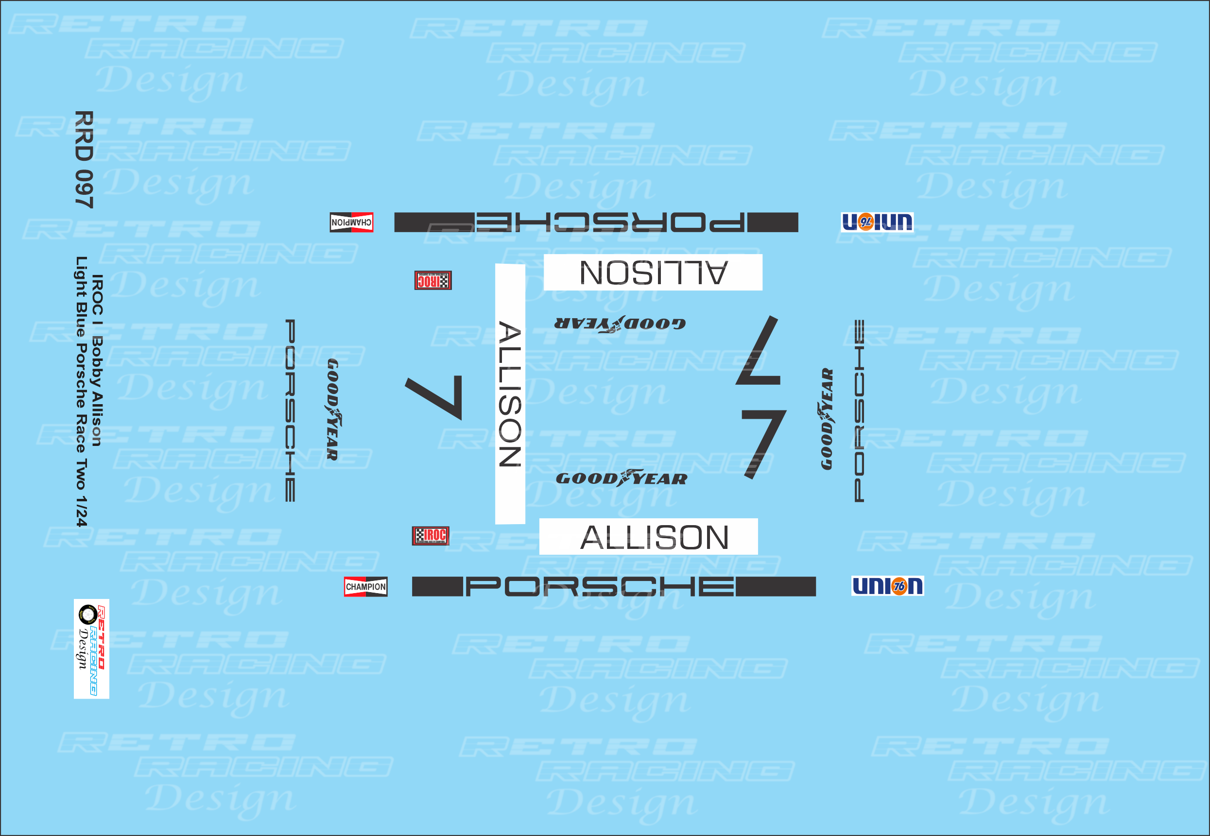 Retro Racing Design IROC I Bobby Allison Light Blue #7 Porsche Race 2 1/24 Scale Decal