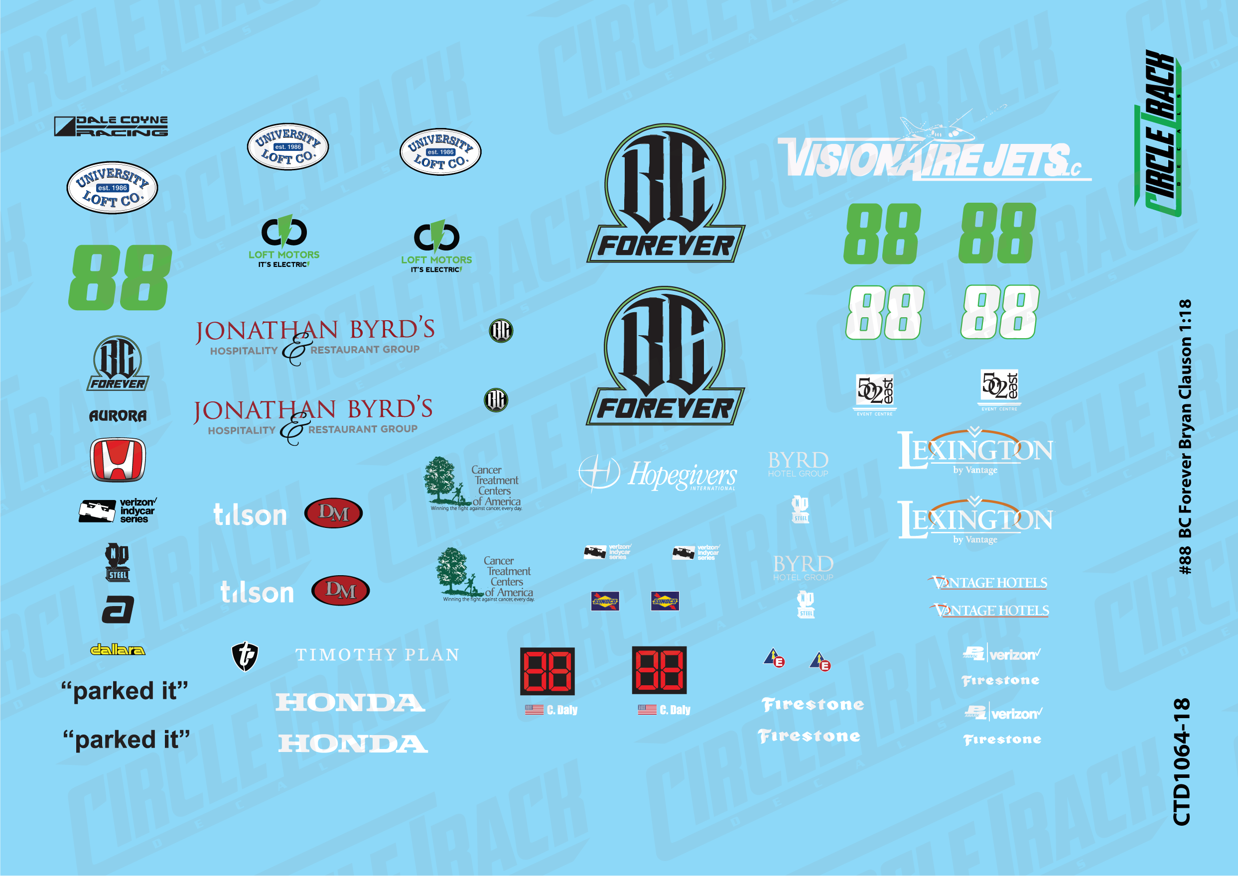 Circle Track Decals #88 BC Forever Bryan Clauson 2016 IndyCar 1:18 Decal Set