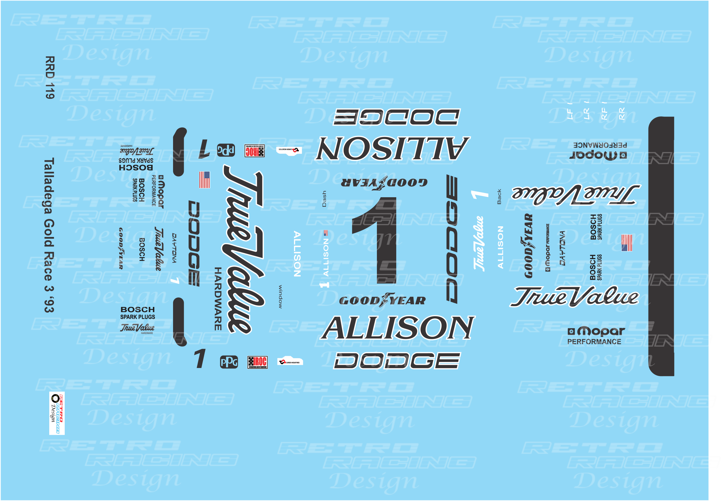 Home Retro Racing Design Davey Allison IROC 1993 #4 Gold Dodge Daytona 1/24 Scale Decal
