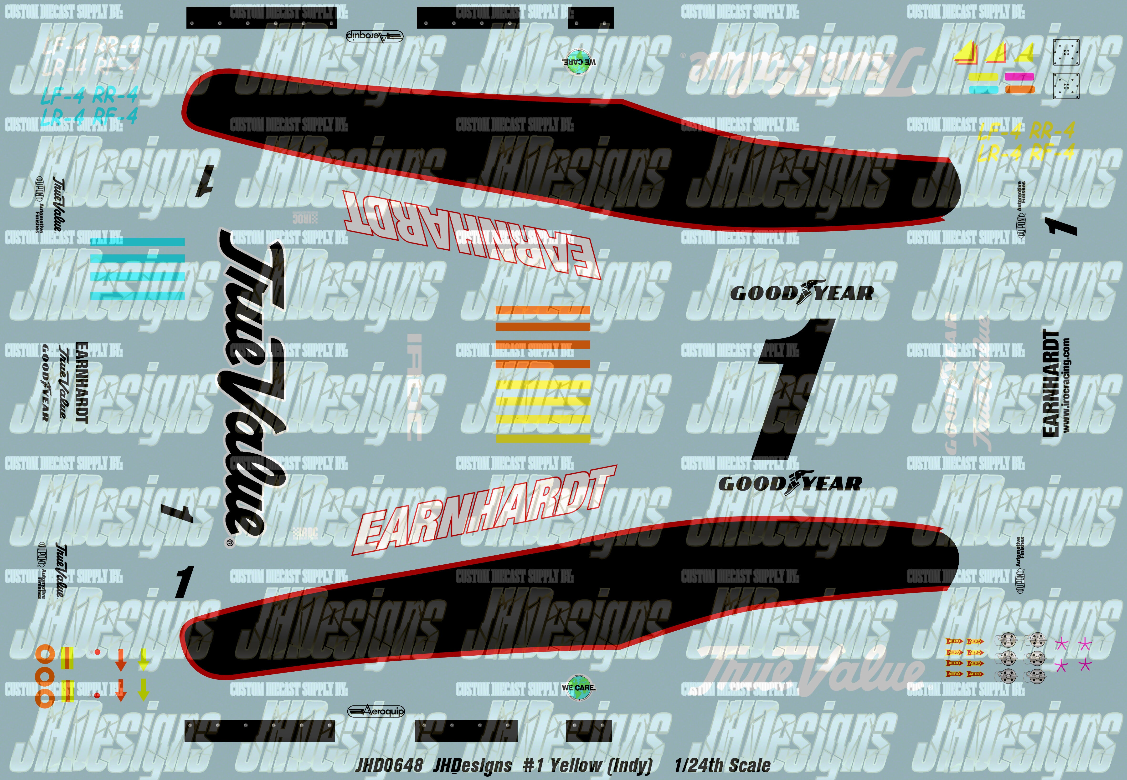 JH Designs Dale Earnhardt 1999 IROC #1 Yellow Firebird (Indy) 1:24 Racecar Decal Set