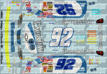 JH Designs Jimmie Johnson 2001 NBS #92 Excedrin PM 1:24 Racecar Decal Set