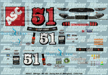 JH Designs Joey Gase 2020 CUP #51 ASC - Sharing Hope SC (Darlington2) 1:24 Racecar Decal Set