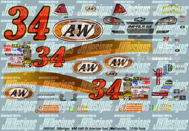 JH Designs John Andretti 2009 CUP #34 A&W All American Food (Martinsville) 1:24 Racecar Decal Set