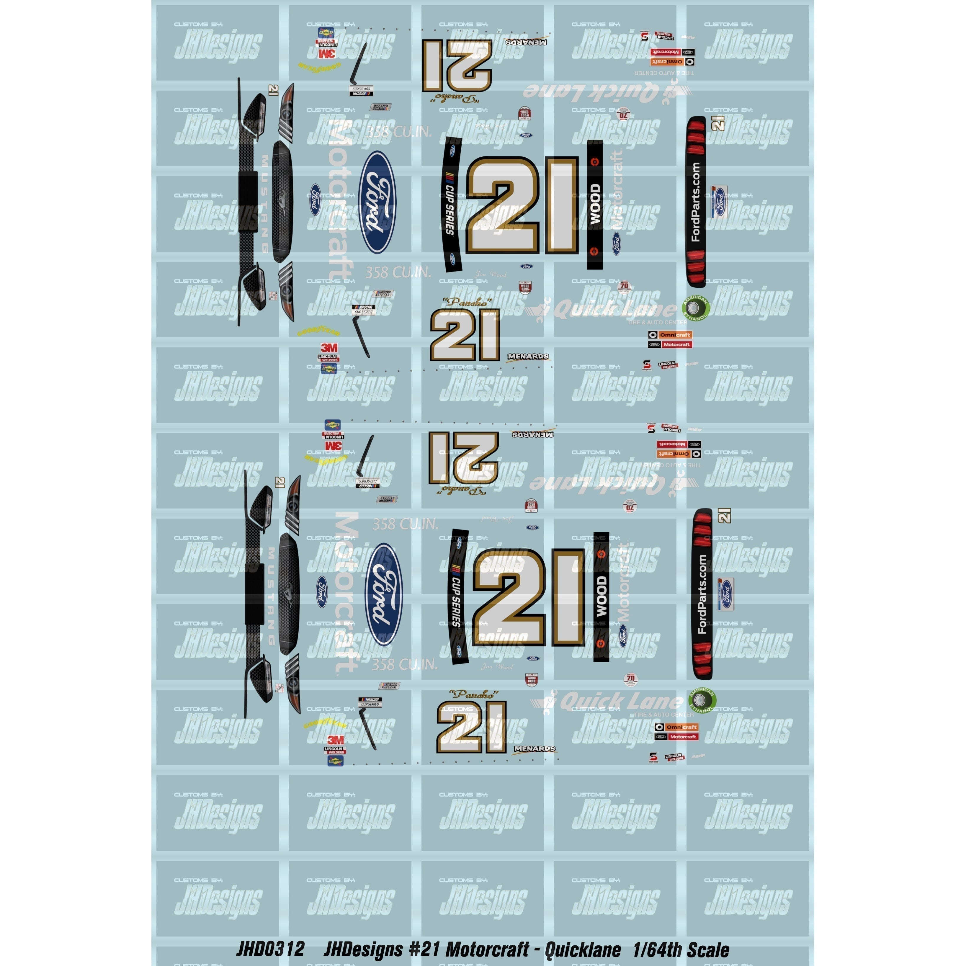 JH Designs Jon Wood 2020 IRACING #21 Motorcraft - Quicklane 1:64 Racecar Decal Set