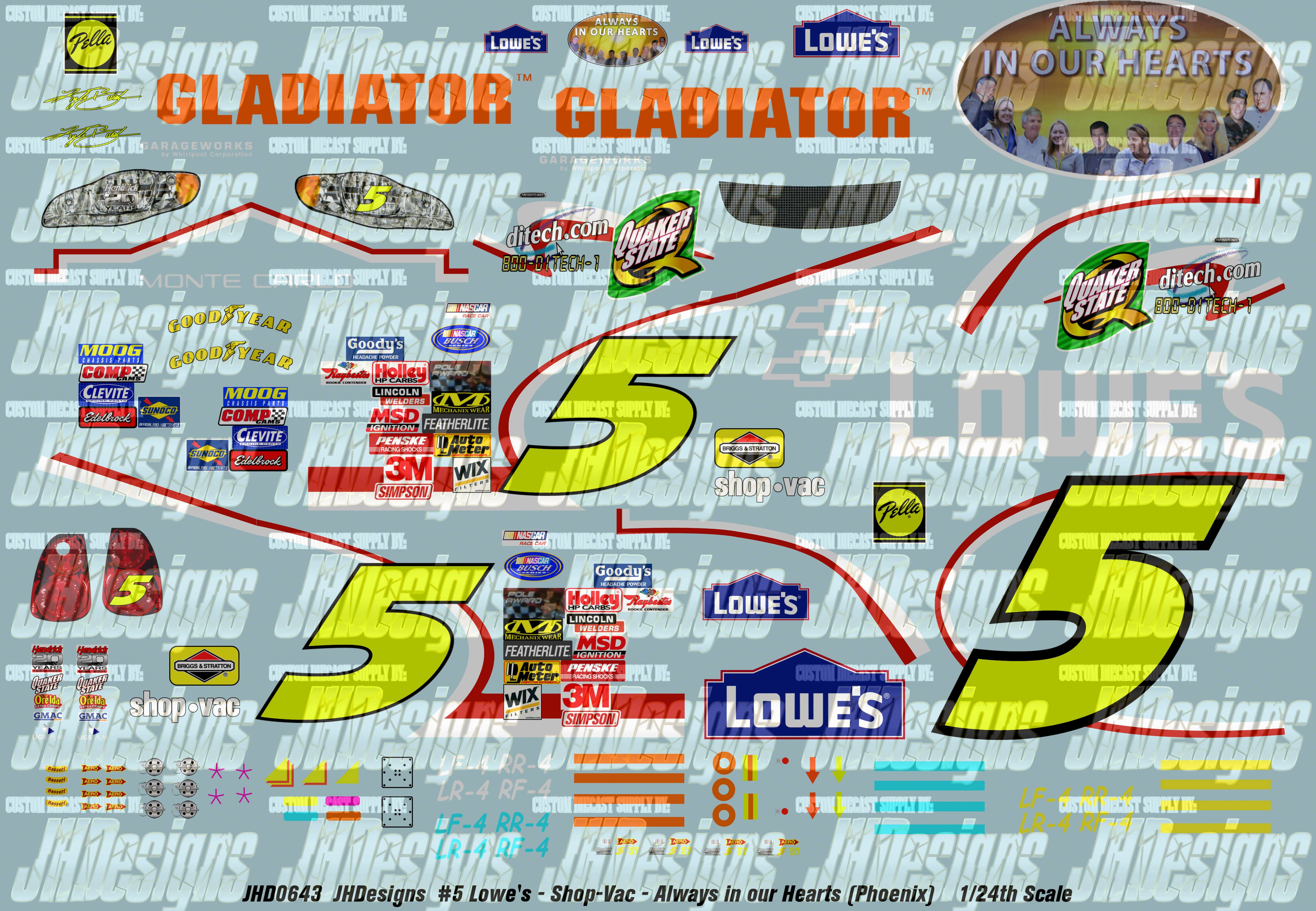 JH Designs Kyle Busch 2004 NBS #5 Lowe's - Gladiator - Always In Our Hearts (Phoenix) 1:24 Racecar Decal Set