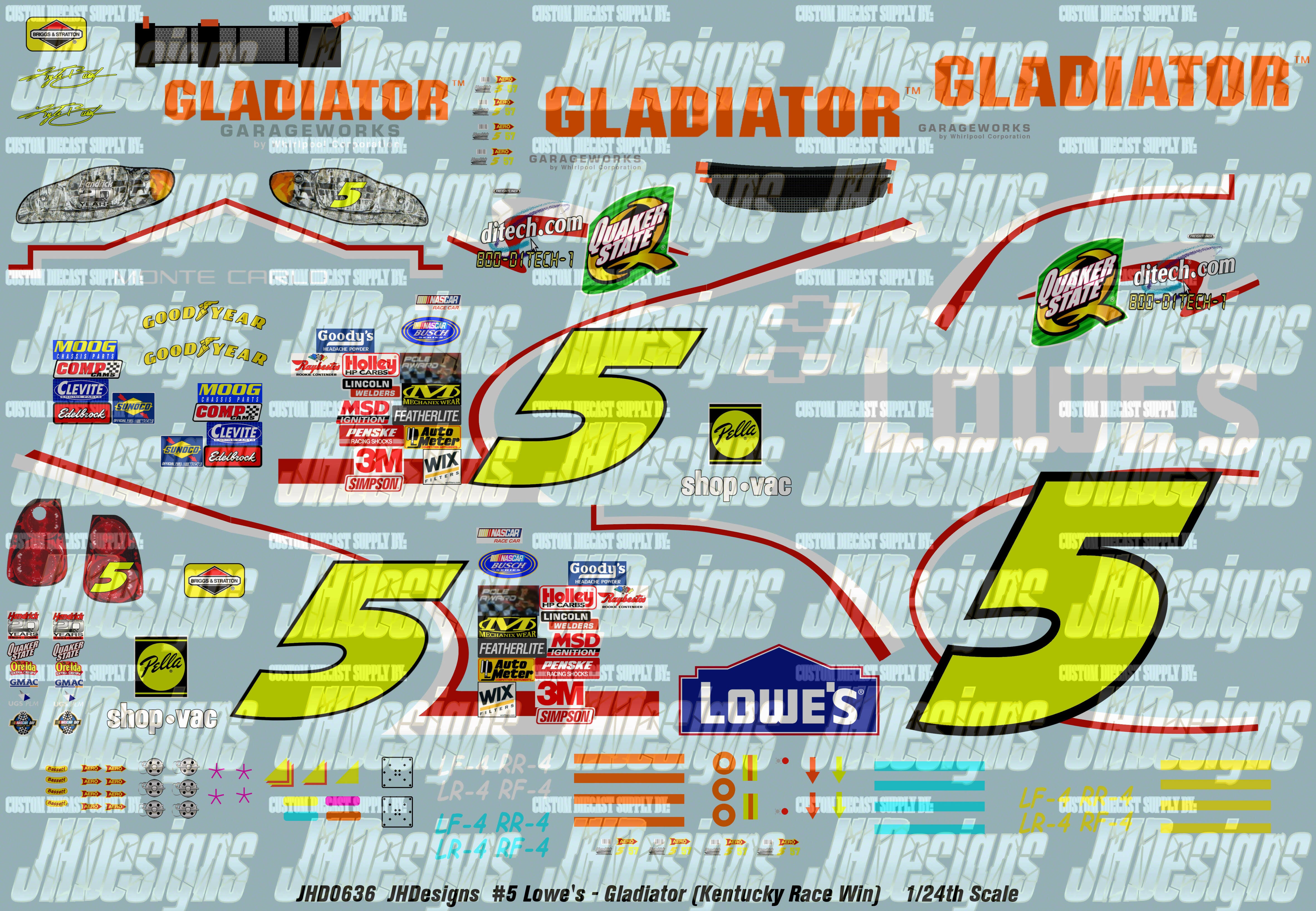 JH Designs Kyle Busch 2004 NBS #5 Lowe's - Gladiator (Kentucky Race Win) 1:24 Racecar Decal Set