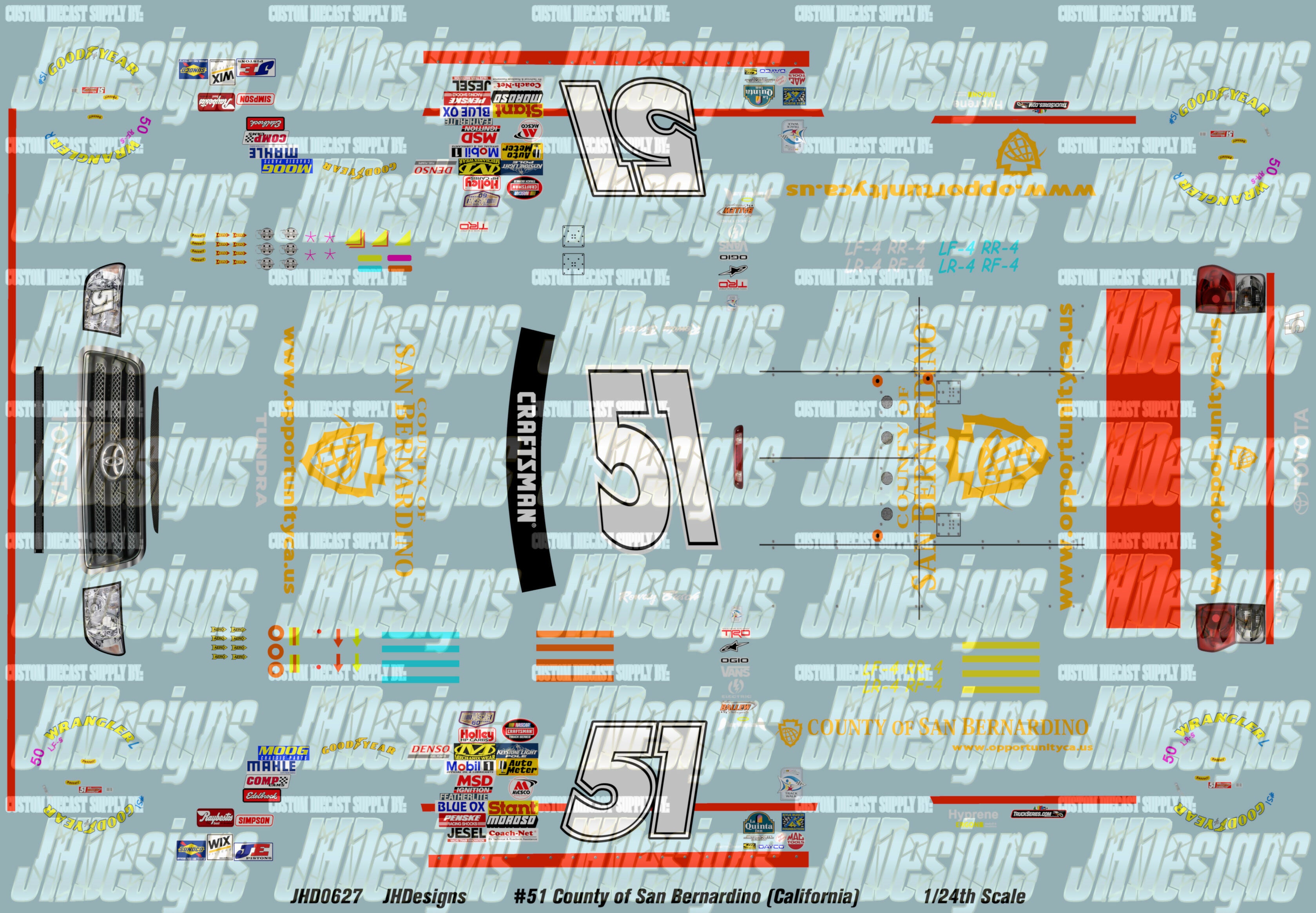 JH Designs Kyle Busch 2008 CTS #51 County of San Bernardino (California) 1:24 Racecar Decal Set