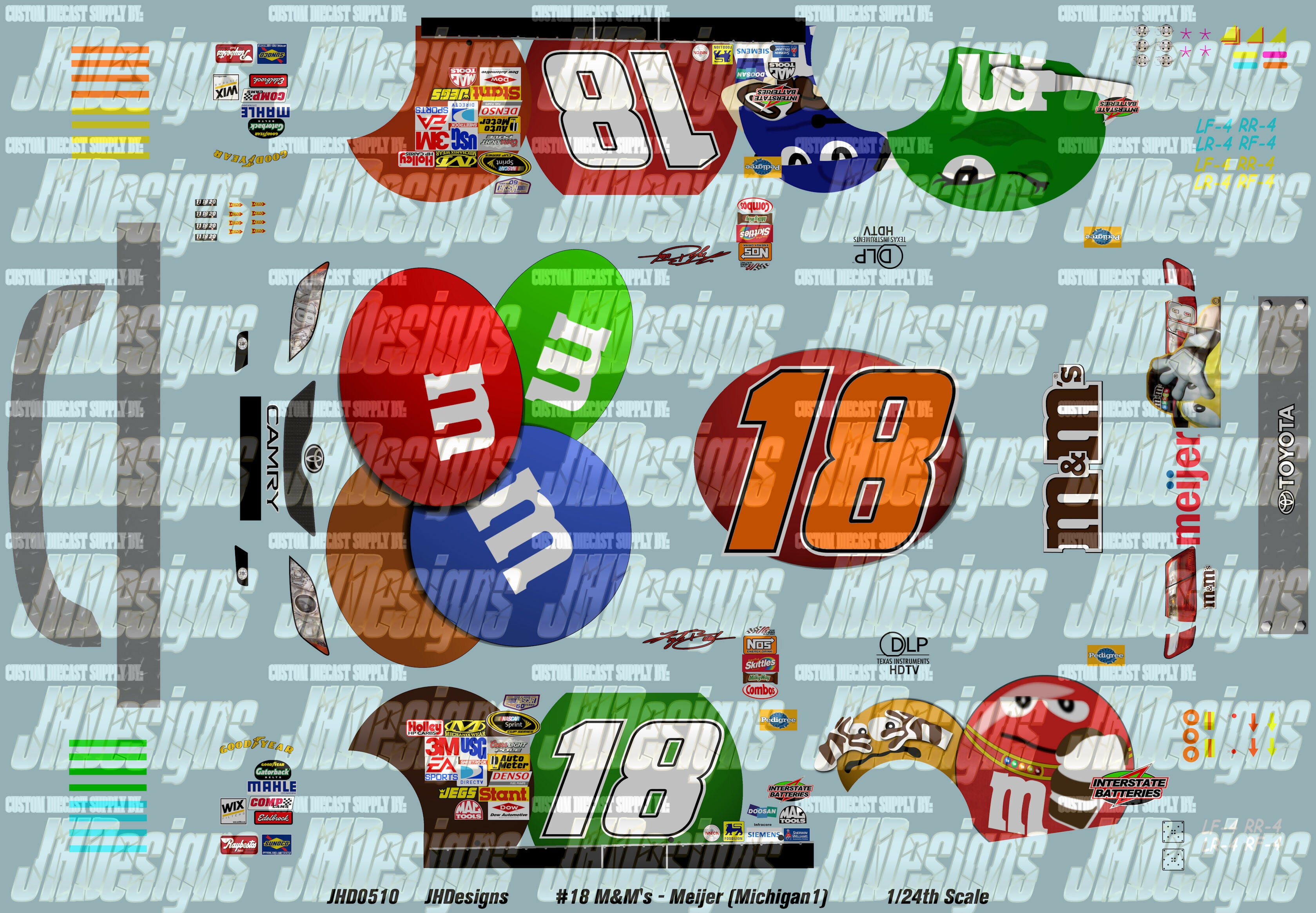 JH Designs Kyle Busch 2008 CUP #18 M&M's Candies - Meijer (Michigan1) 1:24 Racecar Decal Set