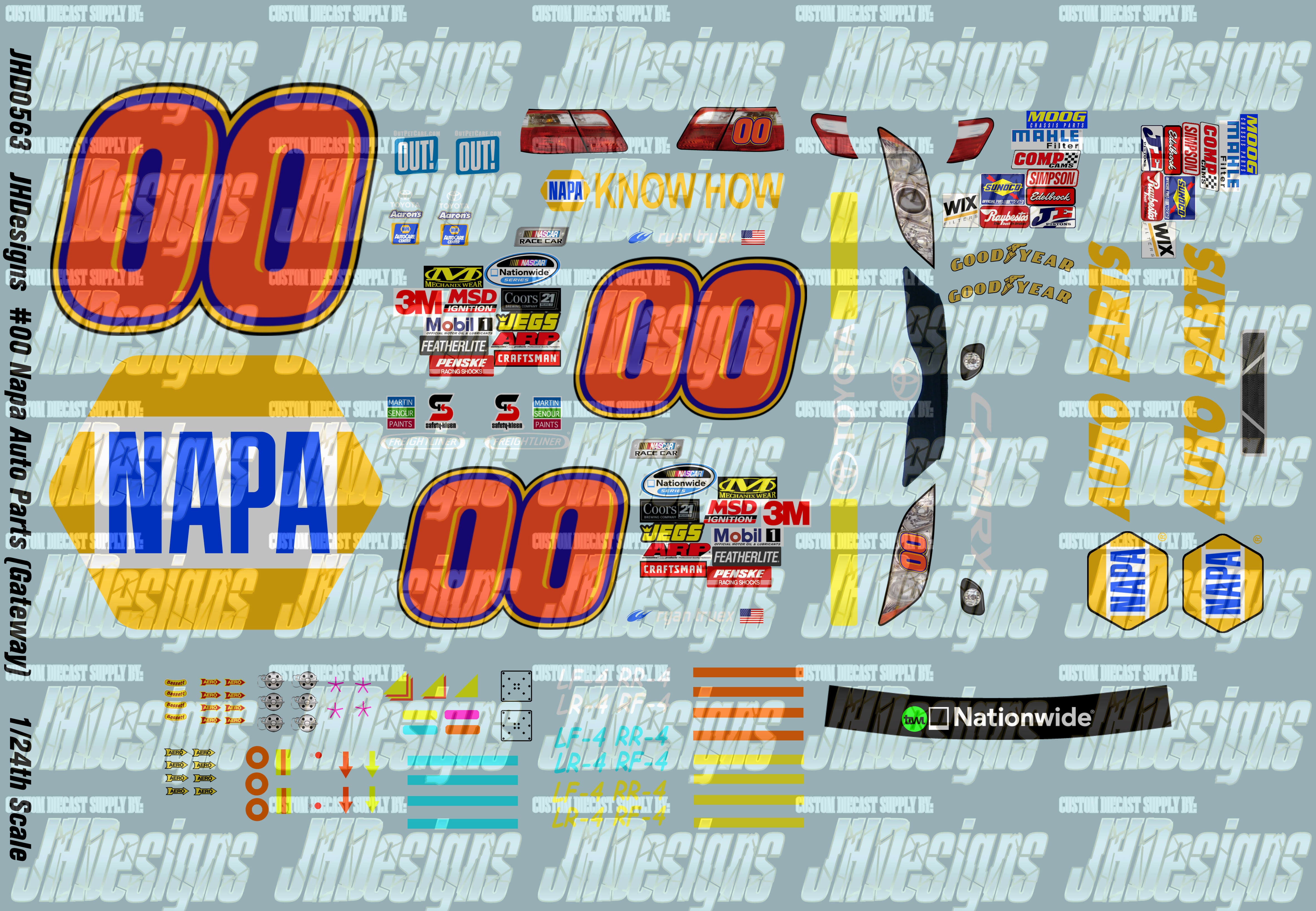 JH Designs Ryan Truex 2010 NWS #00 Napa Auto Parts (Gateway) 1:24 Racecar Decal Set