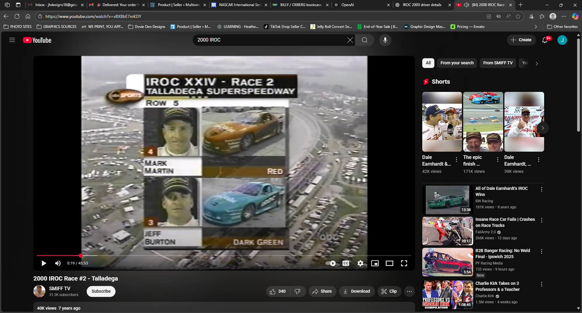 JH Designs Tony Stewart 2000 IROC #2 Rose (Talladega) 1:24 Racecar Decal Set