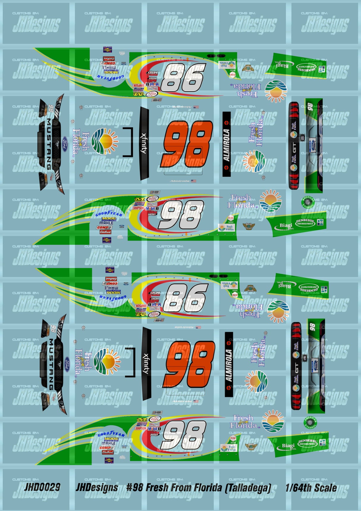 JH Designs Aric Almirola 2017 NXS #98 Fresh From Florida 1:64 Racecar Decal Set