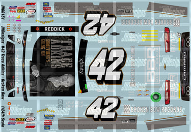 JH Designs Tyler Reddick 2017 NXS #42 Trace Adkins - Broken Bow Records (Daytona) 1:24 Racecar Decal Set