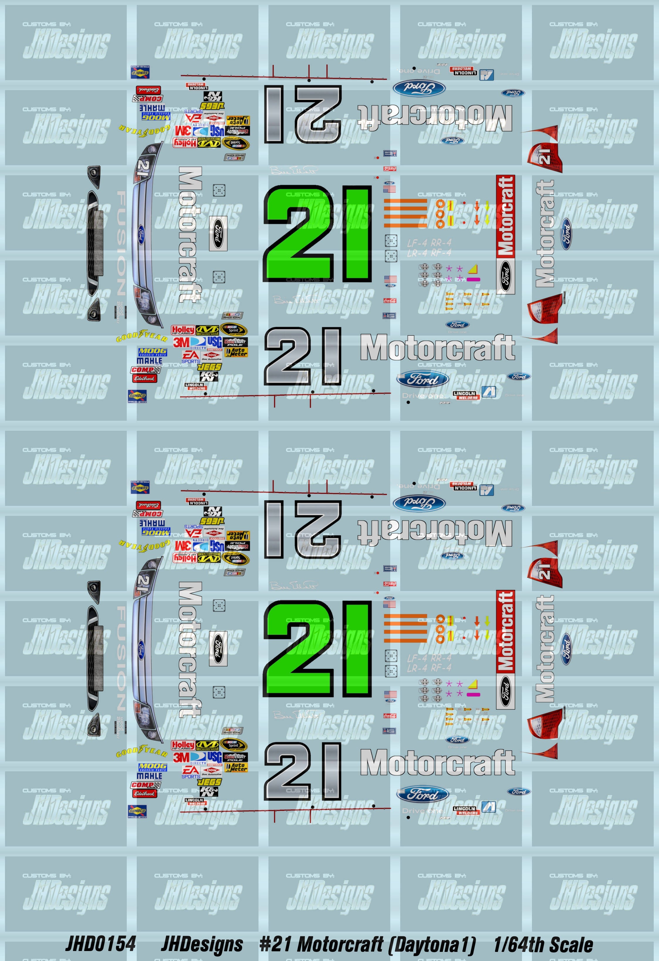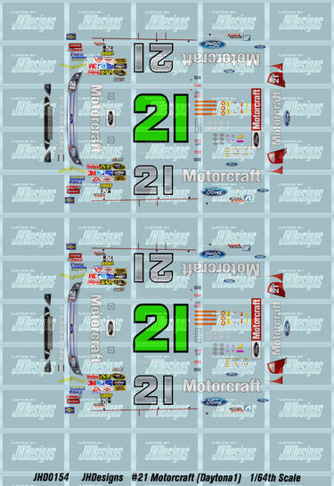 JH Designs Bill Elliott 2009 CUP #21 Motorcraft (Daytona 500) 1:64 Racecar Decal Set