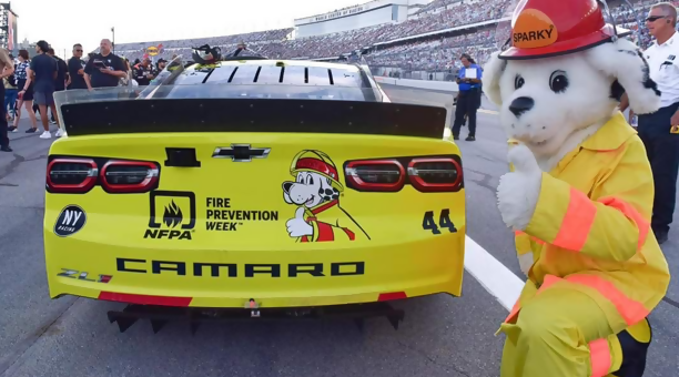 Joey Gase ran this one-off scheme in 2024 to help promote fire prevention week in conjunction with Sparky the fire dog. It was hard to miss on track as the car was roughly the bright citrus color than many firetrucks come in!
