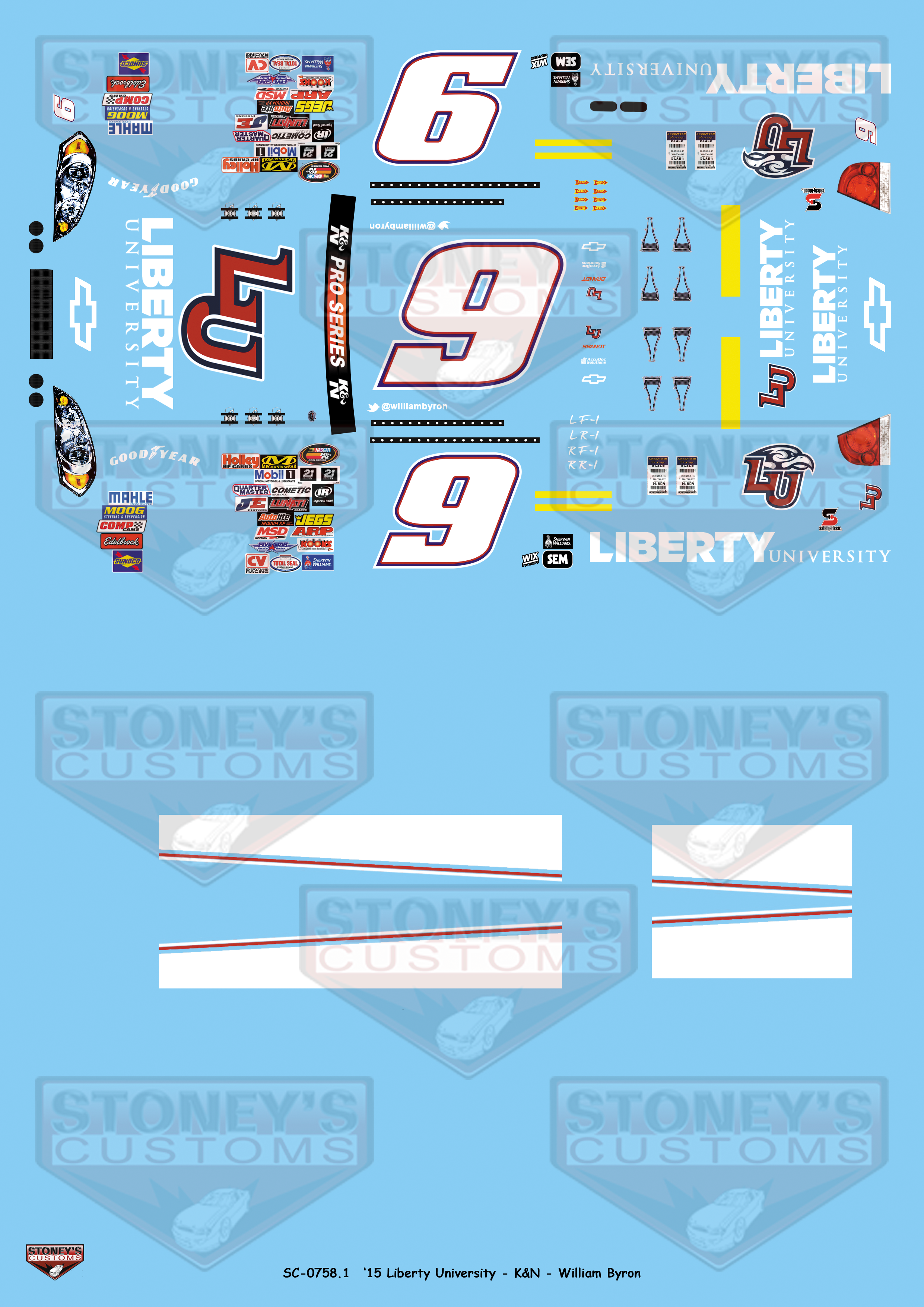 Stoney's Customs 2015 #9 Liberty University - K&N - William Byron 1:24 Decal Set