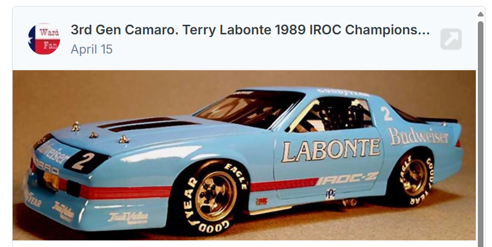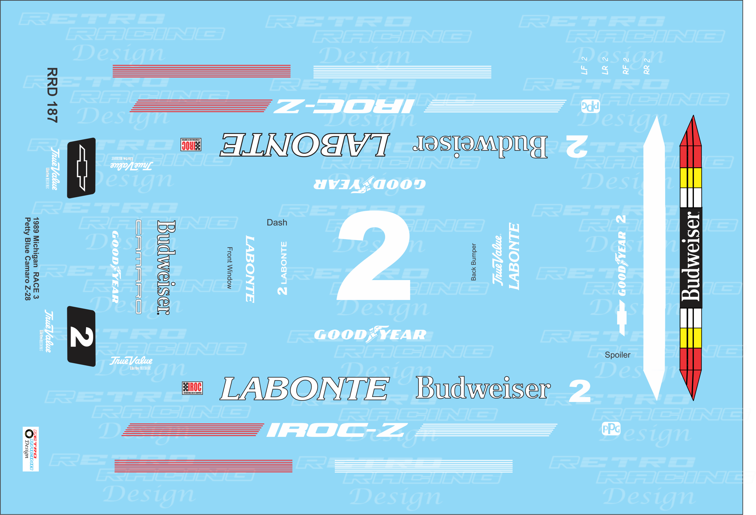 Retro Racing Design Terry Labonte IROC 1989 Bright Blue Camaro 1/24 Scale Decal