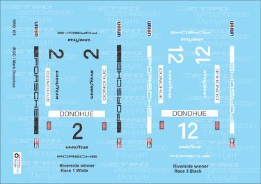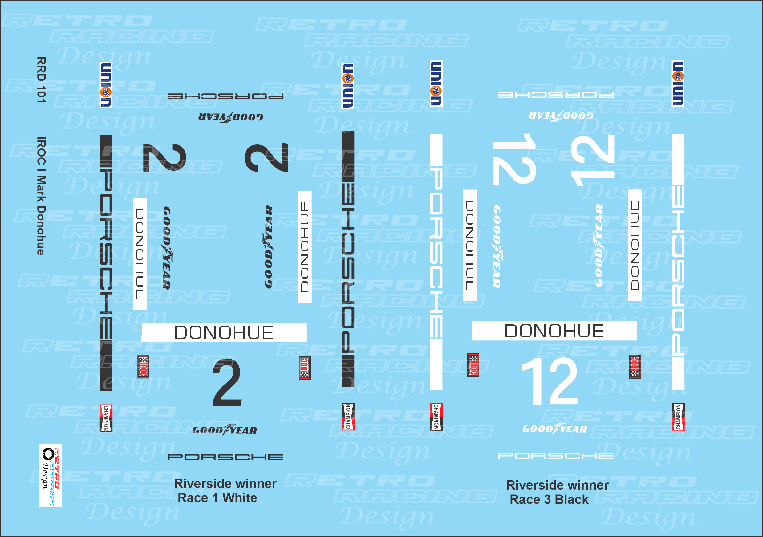 Retro Racing Design IROC Porsche #2 Mark Donohue Riverside Win 1/24 Scale Decal First IROC Race Winner